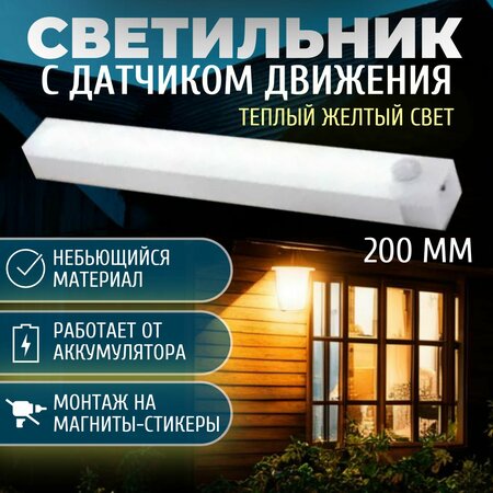 Удобный беспроводной светодиодный светильник с теплым мягким светом и аккумулятором, позволяющим заряжать светильник где угодно через USB кабель. Переносная аккумуляторная лампа - ночник универсальна, крепится в любом месте вашего дома благодаря облегченной конструкции и магнитным креплениям: на настенных, настольных, потолочных панелях, без сверления и проводов. Прикрепите 2 магнитных стикера к светильнику и 2 к поверхности, где хотите разместить сам светильник. Монтаж готов! Наш переносной аккумуляторный светильник поможет Вам осветить пространство в детской комнате, прихожей, на балконе, в мебельном шкафу, в спальне, под кроватью, пригодится на даче, освещая лестничное пространство, либо беседку, в гараже в зоне парковки автомобиля. На кухне при мытье посуды не нужно мокрыми руками отключать подсветку зоны над раковиной, светильник отключается сам через 20 секунд при Вашем отдалении. Светильник подсветка включится ночью на кухне, если захотите попить воды или в детской комнате, если малыш требует внимания ночью. Незаменим на природе, в палатке , в походе, на охоте, рыбалке . В вечернее время прекрасно подсветит пространство. Оптимальное соотношение цены и качества! Светильник на движение с зарядкой прекрасный вариант и помощник дома при экстренных отключениях электричества. У светодиодной панели несколько режимов свечения: режим датчика движения (радиус работы 120 градусов на расстоянии от 3 метров) и режим постоянного света. Установленный сенсорный датчик движения включит светильник при вашем приближении и отключит его при удалении через 20 секунд. Продукция сертифицирована, каждый светильник проверен на исправность, надежно упакован в двойную бабл-пленку. Прекрасный универсальный подарок на новоселье в квартиру, дом или дачу. Современные технологии, минимализм, прекрасные дизайнерское решение сделают Ваш дом уютным и удобным. Будем рады Вашему отзыву! Мы работаем для вас)) С огромным уважением, команда AVINHOME.