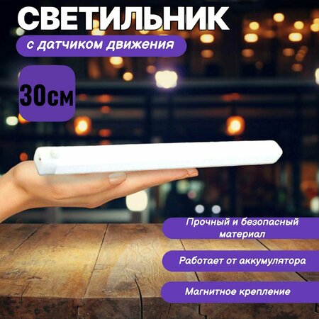 Достоинства:компактный, удобно регулировать яркость, мобилен, можно использовать как фонарик, крепить в различных местах Недостатки:датчик движения реагирует с запозданием на пару секунд Комментарий:рекомендую, в ночное время на минимальной яркости хорошо подсвечивает пол и не раздражает. Лампа закреплена по плинтусу для подсветки пола и включена постоянно, так как дома кот датчик света постоянно реагирует на всё движения днём и ночью, одной зарядки хватает на месяц и чуть больше.