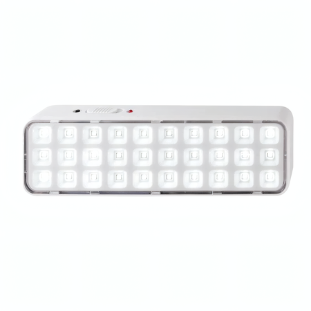 Светильник аккумуляторный предназначен для подсветки путей эвакуации и рабочих зон при отключении питания. Оснащен 3 режимами работы: 30%, 100% и кнопкой «тест», освещение достаточно яркое, чтобы организовать безопасную эвакуацию. Светодиодные лампочки в данном светильнике очень надежны и имеют большой ресурс использования, также они потребляют очень небольшое количество электроэнергии, что позволяет лампе портативно работать более 6 часов. Светильник имеет 2 варианта крепления: настенное и потолочное. Монтаж производится быстро и не требует профессиональных навыков. Светильник соответствует всем требованиям безопасности. Технические характеристики: Способ крепления: настенный, подвесной Номинальное напряжение: 230 В, 50/60 Гц Мощность: 3 Вт Степень защиты: IP30 Время работы от аккумулятора: 180 минут Материал корпуса: пластик Источник света: LED Цветовая температура: 6500 К Размеры стекла: 329x118 мм Размеры светильника: 355x145x20 мм