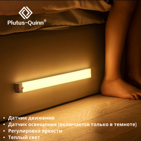 -Включите прибор в режиме беспрерывного освещения -Долгим нажатием на кнопку переключатель отрегулируйте комфортный для Вас уровень яркости. Крепится подсветка на наклейку, к которой приклеивается магнитная полоска. Благодаря такому креплению, светильник можно легко снимать для подзарядки и устанавливать обратно. Светильник ночник с датчиком движения прекрасно подойдет в детскую комнату, если ребенку нужно встать ночью в туалет. Так как прибор включается автоматически, при движении, Ваш малыш не будет пугаться темноты. Светодиодный светильник с датчиком движения добавит в Вашу жизнь комфорта!