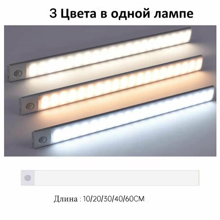 ❤Особенности ● Сверхдлительный срок службы светодиода: >22000 часов. ● Тонкий дизайн 0,9 см, незаметное украшение. ● Освещение: Цветовая температура: 3000/4000/6000K: сверхпрочный светодиод для освещения любых мест, где вам нужна Ночная подсветка. ● Функция датчика движения. Свет будет автоматически включаться при движении, активированном в пределах 3 м/120 ° в темноте , а затем автоматически выключаться через 25 секунд для экономии заряда батареи. ● Встроенная аккумуляторная батарея. Нет батареек AAA: Этот ночник с датчиком движения питается от перезаряжаемой батареи большой емкости, которая может работать несколько недель или даже месяцев (только при работе в режиме датчика движения, например загорается в течение 10 раз в день), но частое автоматическое загорание может сократить срок службы батареи. ● Простая установка без каких-либо инструментов: приклеив прилагаемый металлический магнитный патч. При необходимости вы также можете взять его как ручной светильник. ● Отсутствие проводки и монтажа в любом месте: можно установить в шкафах, под шкафами, на прилавки, полки, коридоры, гардеробы, кухни, лестницы, ящики, в подвалы, гаражи, складские помещения и т. д. везде, где вам нужен ночник.