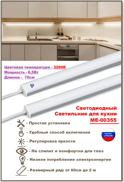 Качественный Светодиодный светильник МЕ-00355, предназначена для подсветки рабочей зоны на кухне, пространства в гардеробной и т. д.