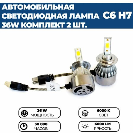 Автомобильная лампа модели C6, давно зарекомендовала себя среди автовладельцев своей простотой и надёжностью. Яркость лампы превосходит галогеновые аналоги в три раза. Светодиоды с температурой свечения 6000k (белый) выдают более 3800Lm на дистанцию более 30 метров. После установки ламп разница в свечении заметна сразу, вы начинаете видеть дальше и лучше, при этом не ослепляя встречные автомобили за счёт точного пучка направленного света. Лампы соответствуют стандарту IP68 об абсолютной герметичности, что исключает проникновения влаги и пыли под алюминиевый корпус. Хорошо работают при экстремальных температурах от -50C до 105С, охлаждение происходит за счёт встроенного вентилятора скорость вращения которого может достигать 15000 об. в мин. Выполнены в жёстком алюминиевом корпусе весом не более 160г. на 2 лампы. Расчётный срок службы до 30000 часов. внимание! Напряжение 12V. Установка занимает не более 20 мин. После установки не выдают ошибку компьютера большинстве современных автомобилей, перед установкой вы всегда сможете написать нам и проконсультироваться. Мы предоставляем гарантию на лампы и своевременный сервис. Комплектация Лампа - 2 шт, переходник H7 - 2 шт.
