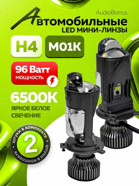 Мини линзы M01К с цоколем h4 – лучшее решение для вашего автомобиля. Преимуществом данных ламп является встроенный современный чип CSP, благодаря которому не высвечиваются ошибки и создается быстрый старт до 0,1 сек. Данные лампочки h4 на 300% ярче аналогов, обладает четкой светотеневой границей. led H4 предназначены как для ближнего, так и для дальнего света. Качественные светодиоды линз создают мощный направленный поток (до 10800 люменов) белого автосвета, температура которого составляет 6500К. Представленная led лампа обеспечивает повышенную безопасность за счет предотвращения возможности короткого замыкания или перегрузки. Лед лампа устойчива к вибрациям и перепадам напряжения, работает в диапазоне 12-24 V. Подходят для установки в обычные фары! За счет своего маленького размера мощные линзы без проблем можно установить практически в любую автомобильную фару. Установка автоламп занимает не более 20 минут. Если в вашем авто стоит отражатель внутри фары, то его необходимо снять при установке новых линз. Мы уверены, что Вы будете довольны освещением данных лэд ламп! Автомобильные светодиодные лампы являются лучшим вариантом для замены штатного ксенона или галогена, разница будет видна Вами сразу!