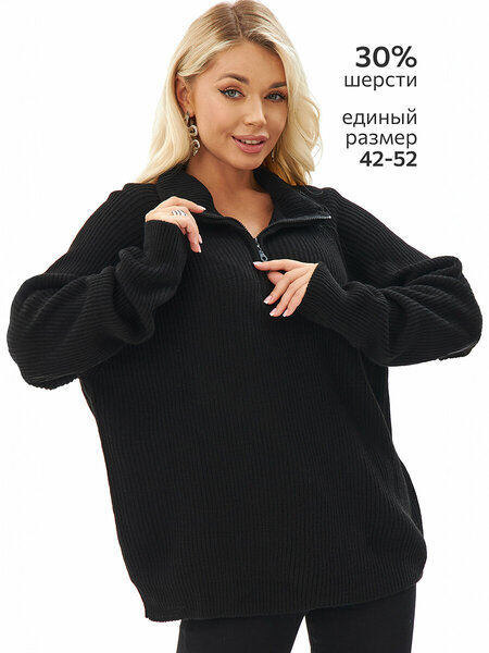 Женский свитер оверсайз с воротником стойкой на молнии — уютный элемент гардероба, который гармонично сочетает комфорт и стильные акценты. Преимущества: — черный свитер one size дарит уют и тепло в осенние и зимние дни; — удлиненный крой и свободный фасон создают расслабленный силуэт; — свитер из вязаного трикотажа с хлопком, шерстью и акрилом обеспечивает мягкость, прочность и долговечность; — вязаный джемпер в рубчик сохраняет тепло и комфорт в холодную погоду осенью и зимой; — классическая английская вязка создает дополнительный объем и текстуру; — теплый свитер с рукавами реглан не стесняет движений и удобен на каждый день; — молния на воротнике стойке позволяет регулировать глубину выреза и добавляет стильный акцент. Свитер единого размера подходит для любого типа фигуры. Однотонный свитер подходит для прогулок, встреч с друзьями, работы и уютных вечеров дома.