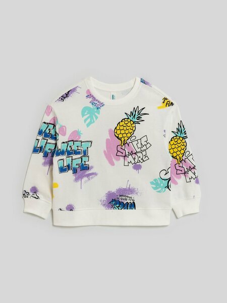 Достоинства:Отличный свитшот! Яркий и качественный! Недостатки:Недостатков нет. Всё супер!! Комментарий:Очень хорошо сшит. Яркий, ребёнку очень нравится. Идёт в размер. Все обращают на нас внимание. На фото немного нам свободный, т.к взяли размер чуть больше специально. Рост 136, а размер 140.