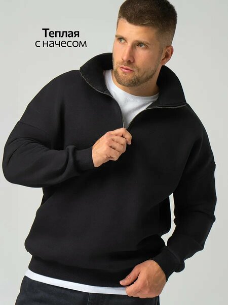 Теплый мужской свитшот с воротником-стойкой на молнии – удобный и стильный элемент гардероба, который идеально подойдет для холодного сезона. Преимущества: — свитшот оверсайз для мужчин выполнен из хлопкового футера с начесом; — утепленный свитшот с начёсом дарит комфорт и сохраняет тепло в прохладную осеннюю и зимнюю погоду; — однотонный свитшот-поло из хлопка с полиэстером мягкий и приятный к телу; — черный свитшот на замке универсален и подходит для повседневных образов; — эластичная резинка по низу фиксирует посадку и делает модель практичной; — манжеты на рукавах позволяют регулировать длину и обеспечивают удобство; — воротник-стойка с молнией регулируется и добавляет стильный акцент; — базовый свитшот с горлом отлично вписывается в спортивный стиль. Трикотажный свитшот на полузамке подходит для прогулок и активного отдыха осенью и зимой.