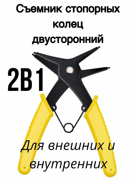 Съемник стопорных колец 2 в 1 внешнего и внутреннего назначения Применяется для демонтажа внешних и внутренних стопорных колец. Эргономичные рукоятки делают работу более комфортной. Пружина между рукоятками помогает снизить нагрузку на руку. Ограничительный винт бережёт кольцо от деформации. Острые и прочные кончики обеспечивают надежный захват, исключая возможность его случайного соскальзывания или повреждения. Подойдет для ремонта автомобилей, мотоциклов, сельскохозяйственной техники и др; Приобретая данный съемник стопорных колец, вы получаете надежный и функциональный инструмент для профессионального использования. Он обеспечит безопасность и комфорт в процессе работы.