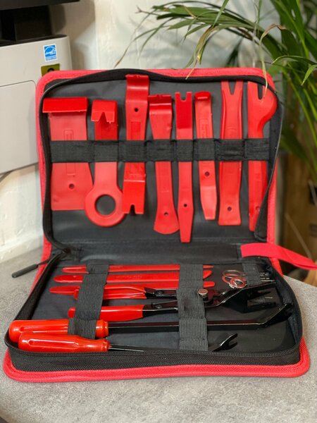 Набор инструмента Съемников 19 предметов для ремонта автомобиля лопатка. Изготовлена из нейлонового волокна пластика и клипсодер из металла, нецарапается автомобильное лакокрасочное покрытие и не оставляет сколов краски авто при работе. Автонабор универсальный подойдетв в автосервис СТО для аккуратного разбора разборки подготовки демонтажа: обшивки салона, шумоизоляция, снятия клипс, пластиковые панели, двери, тонировки, сигнализации, накладки машины, декора, бамер, сполер, заглушка, удаление молдингов, демпфер, приборная панель, стекол с зеркалок, тюнин, г торпеда, ручка, кпп, подкрылки, обивка багажника, потолка, панель приборов, экран, фиксатор автомагнитол, элементов крыла, хромированный, пистоны, пороги, магнитолы, дверные карты, крышка багажника, капота, заклепки, миаудиосистем, облицовка автотовар, крепления руля, безопасная кожаных сьемники, клипса. Ремкомплект подойдет на мотоцикл мото и машинв. Подарок черный органайзер сумка подойдет доя парней знающего своего дела автолюбителя. под марки приора, нива, шевроле, ваз, лада, тойота, форд, киа, ниссан, мазда, фольксваген, лексус, хендай, рено, ауди, акура, бмв, кадилак, чери, ситроен, додж, фиат, хонда, инфинити, лифан, мерседес, опель, митсубиши, пежо, сузуки, субару, вольво, газ, opel, renault, opel, priora, volkswagen, toyota, skoda, nissan, kia, honda, ford, mazda, lexus, hyundai, lada, niva, bmw. диаметр 5, 6, 7, 8, 9, 10 Диаметр клипс 5мм, 6мм, 7мм, 8мм, 9мм, 10мм Комплектация Инструменты для демонтажа внутренней отделки (нейлоновое волокно) -11штук Инструменты для удаления автомобильных клемм -2 штук Инструменты для высвобождения -3 штук Инструменты для удаления стерео(автомагнитолы) -2 штук Плоскогубцы для удаления Клипс -1 штук Органайзер сумка черная для хранения набор клипс -1 штук