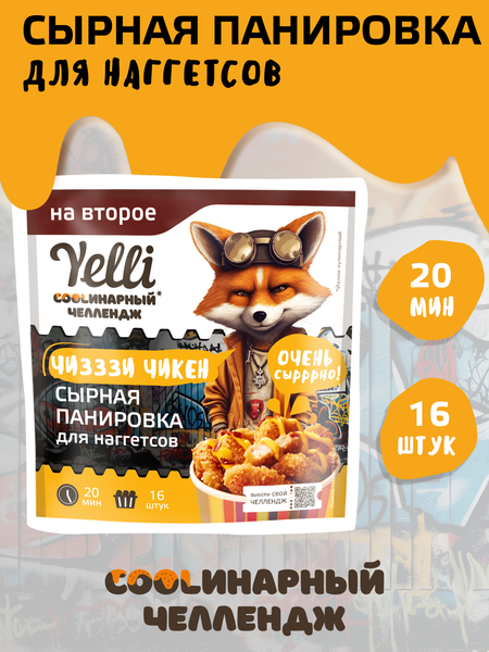"Yelli Кулинарный челлендж – это новая линейка трендовых продуктов для подростков: скрембл на завтрак вместо каши, домашний фастфуд, а еще - трендовые кукисы и панкейки. Сырная панировка для наггетсов ЧИЗЗЗИ ЧИКЕН от Yelli – идеальный выбор для любителей хрустящих и ароматных закусок. Эта панировка придаст вашим куриным наггетсам неповторимый вкус, сочетая в себе насыщенные сырные нотки и идеальную текстуру. Разработанная специально для куриного мяса, сырная панировка отлично обволакивает наггетсы, создавая хрустящую корочку, которая подарит вам незабываемые вкусовые ощущения. Неважно, готовите ли вы их на сковороде или во фритюре – с этой панировкой ваши блюда всегда будут удачными. Продукт удобен для быстрого и легкого приготовления закусок. Просто обваляйте куриные кусочки в панировке и готовьте так, как вам удобно. Такой простой процесс приготовления позволит вам наслаждаться вкусными домашними наггетсами в считанные минуты. Порадуйте близких и себя оригинальными блюдами, которые вы сможете легко приготовить с помощью этой сырной панировки. Замечательный выбор для семейного ужина или встречи с друзьями. Сочетание качества, удобства и великолепного вкуса делает сырную панировку ЧИЗЗЗИ ЧИКЕН от Yelli настоящей находкой для ценителей быстрой и вкусной еды."