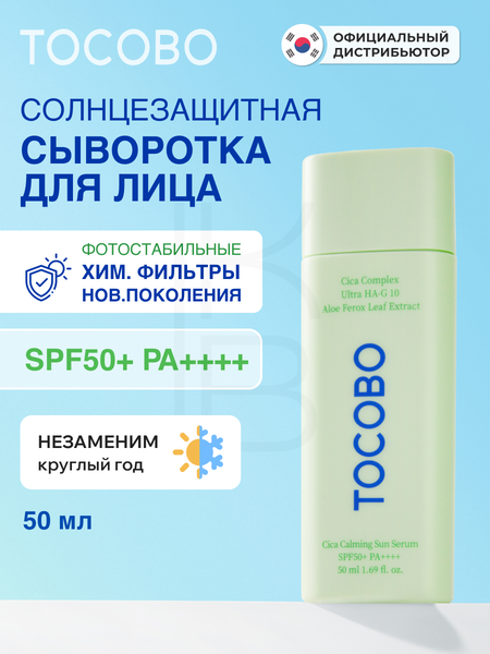 Сыворотка cолнцезащитная для лица с экстрактом центеллы 50ml | TOCOBO Cica Calming Sun Serum SPF50+ PA++++ 50ml
