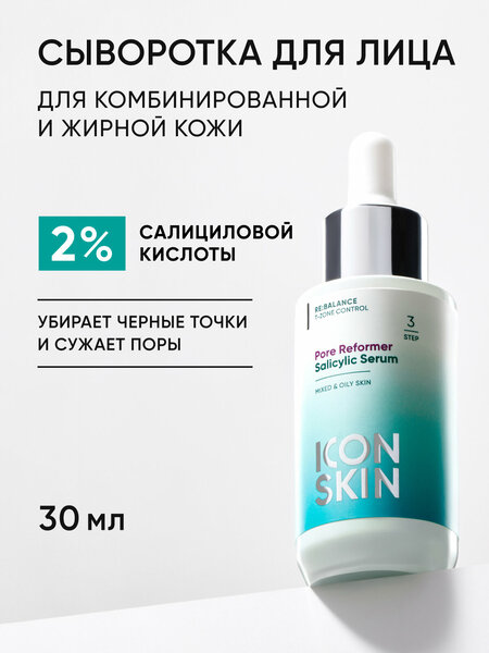 Сыворотка для лица Pore Reformer — рабочее средство для сужения пор на лице. Ключевой ингредиент сыворотки от черных точек — салициловая кислота для лица. Сыворотка с салициловой кислотой 2% — незаменимый продукт для комбинированной кожи лица и для жирной кожи лица, имеющей склонность к появлению несовершенств. Помимо качественного очищения и регулярного увлажнения, для комбинированной и жирной кожи часто требуется дополнительный активный уход. Это может быть связано с необходимостью скорректировать несовершенства, из-за которых кожа чувствует себя хуже: расширенные поры, черные точки и сальный блеск. Двухпроцентная концентрация кислоты в сочетании с комплексом растительных экстрактов, увлажняющих активов и успокаивающих компонентов существенно улучшает состояние кожи. Формула эффективно борется с избыточной жирностью. Воспаления становятся менее заметными, а кожа выглядит более здоровой, гладкой и свежей.