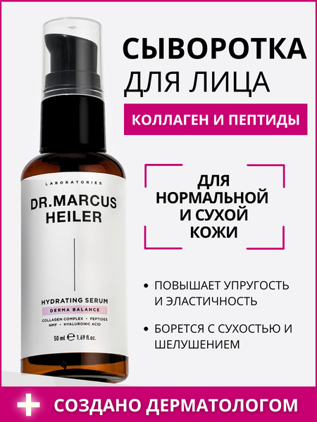 Сыворотка для лица увлажняющая Doctor Heiler с ниацинамидом и пептидами, 50 мл Увлажняющая сыворотка Doctor Heiler с ниацинамидом и пептидами предназначена для всех типов кожи, включая нормальную, сухую и комбинированную. Она обеспечивает интенсивное увлажнение, питание и восстановление кожи, а также способствует улучшению цвета лица, повышению упругости и смягчению кожи. Сыворотка обладает антиоксидантными свойствами, подходит для ежедневного использования и не тестируется на животных. Она гипоаллергенна и некомедогенна, что делает ее отличным выбором для людей с чувствительной кожей. Флакон с дозатором обеспечивает удобство и гигиеничность использования. В состав сыворотки входят активные ингредиенты, такие как пептиды, витамин B3 (ниацинамид), гиалуроновая кислота, аргирелин и другие компоненты, которые способствуют улучшению состояния кожи. Способ применения сыворотки прост: нанесите ее на очищенную кожу лица перед применением крема, оставьте до полного впитывания и используйте ежедневно утром и вечером. Рекомендуется курсовое применение в течение 3-х месяцев. Объем флакона составляет 50 мл, что делает его экономичным и удобным для использования на протяжении длительного времени. Не содержит искусственных консервантов, красителей и парабенов, что делает сыворотку безопасной для использования.