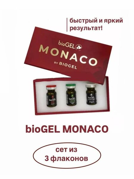 Биогель Монако — инновационный сет, включающий три препарата: bioGEL RED, bioGEL GREEN и bioGEL SILVER LIGHT. Для проведения антивозрастной процедуры с видимым эффектом, сочетающей функциональный на основе нативной гиалуроновой кислоты с ботулиническим токсином типа А. Процедура предоставляет быстрый и яркий результат, который сохраняется на несколько месяцев, что делает её востребованной среди пациентов, желающих получить видимый антивозрастной эффект. Объём упаковки: 3 флакона по 5 мл BioGel RED: Пигментация Отечность лица Обезвоживание кожи Возрастные изменения Профилактика фото- и хроностарения BioGel GREEN: Выраженные возрастные изменения Глубокие мимические и статические морщины Истончение дермы Подготовка и реабилитация после агрессивных процедур (химические пилинги, лазерная шлифовка) BioGel SILVER LIGHT: Борьба с постакне Расширенные поры Склонность к высыпаниям (противовоспалительный эффект) Тонкая кожа (уплотнение кожи) Мощный лифтинг-эффект Стимуляция неоколлагенеза Заполнение морщин Подготовка к инъекциям ботулинического токсина (БТА) Процедура проводится однократно. Препарат по показаниям (BioGel RED, GREEN или SILVER LIGHT) смешивается с ботулиническим токсином в классическом восстановлении (100 единиц на 2 мл). Рекомендуемые дозировки: 5 мл + 20 единиц ботулотоксина 3 мл + 15 единиц ботулотоксина Инъекции выполняются иглой 30G длиной 4 или 6 мм с использованием шприца на 3 мл. Применяются папульная и микропапульная техники для различных зон: средняя треть лица, субментальная зона, шея, декольте, лоб и орбитальная зона.