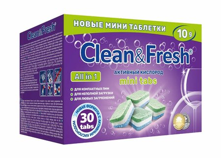 Таблетки для посудомоечных машин Clean & Freash имеют три цветных слоя: зеленый — для лимонного запаха и защиты стекла от коррозии белый — для защиты посудомоечной машины от образования накипи и наслоений извести, синий — сила очистки с активным кислородом. синие микро-жемчужины — для блестящей посуды и сияющего стекла Произведено по европейским стандартам в соответствии с требованиями экологической безопасности. растворяют жиры и придают блеск; не оставляют химикатов на посуде; без навязчивого химического запаха, при открытии посудомоечной машины; не содержит синтетических ароматизаторов; удаляют даже самые сильные загрязнения. Срок годности указан на упаковке. Производство: Россия, г. Санкт-Петербург