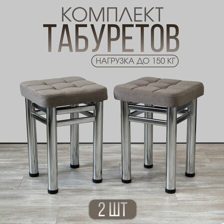 Табурет усиленный "Квадро", цвет серо-коричневый на хромированном металокаркасе.