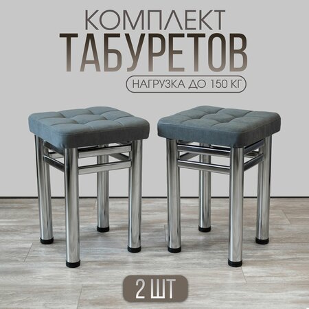 Табурет для кухни. Усиленный комплект - 2 шт. на хромированном металлокаркасе с мягким сиденьем прекрасно впишется в любой интерьер. Данный предмет мебели выдержит большой вес, что делает его идеальным выбором для использования не только на кухне, но и в других помещениях Вашего дома, кафе и офисах. Данный табурет отличается высокой прочностью за счет надежного корпуса из стальных труб. Обивка сиденья изготовлена из прочного и надежного материала, обладающего павышенной износостойкостью и легкостью в уходе. Ножки табурета имеют пластиковые наконечники, которые обеспечивают шумоизоляцию и препятствуют повреждению напольного покрытия, реулируются по высоте. Табуреты выглядят стильно и минималистично. Не боятся влажности и перепада температур. Не ржавеют в процессе эксплуатации.