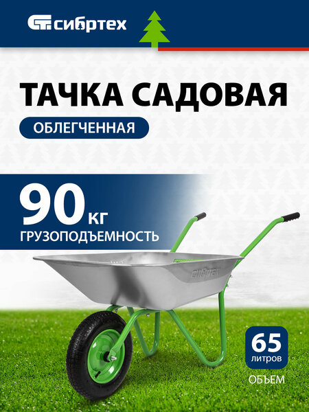 Садовая облегченная тачка Сибртех 689615 с кузовом объемом 65 л служит для транспортировки легких грузов во время садовых и сельскохозяйственных работ. С ее помощью можно привести в порядок территорию и убрать листья, собрать урожай и выполнить другие работы на загородном участке. Преимущества Надежная конструкция — стальная рама состоит из труб диаметром 25 мм и толщиной 0,5 мм, кузов с закругленными бортами устойчив к деформации. Коррозионная стойкость — кузов оцинкован, рама покрыта порошковой эмалью. Маневренность — тачку с одним пневматическим колесом легко разворачивать. Мобильность — благодаря небольшому весу 7 кг и колесу на двух шариковых подшипниках даже нагруженную тачку легко перемещать. Ремонтопригодность — изношенное колесо можно заменить, совместимые артикулы 68971, 68973, 68975, 68940, 68943.