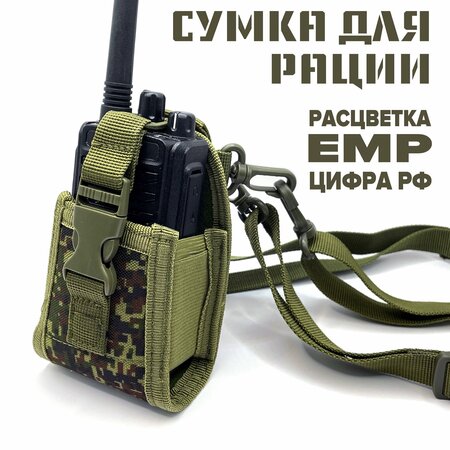 Универсальная сумка чехол для рации из плотного материала. На сумке нет никаких надписей. Сумку можно вешать на систему MOLLE, на ремень, на плечо, на грудь. В комплект входят лямки для ношения не теле. Варианты ношения на теле приведены на картинке. За счет эластичного и тянущегося шнурка, подходит по высоте для всех раций. Бока сумки так же из эластичного материала для совместимости по толщине всех раций. Расцветка: ЕМР (цифра РФ, пиксель РФ). В нашем магазине вы найдете много разных аксессуаров для раций: другие варианты сумок, гарнитуры-наушники, тангенты, кабеля для программирования, зарядки от PowerBank и автомобиля, антенны.
