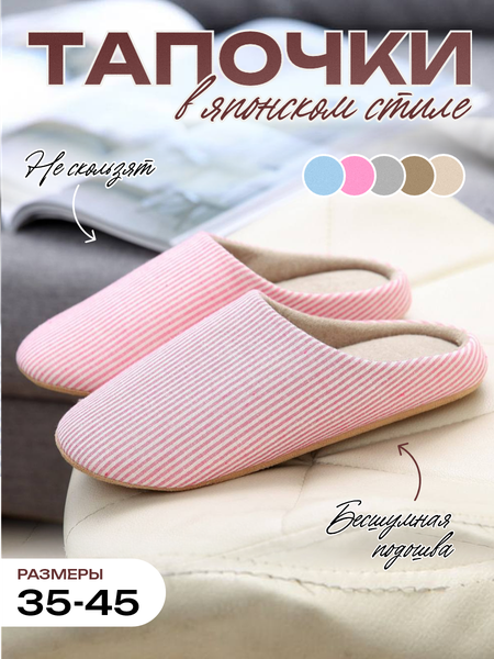 Тапочки домашние в полоску для всей семьи закрытые в японском стиле
