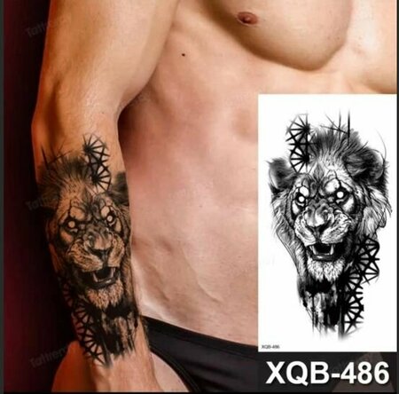 Водостойкая переводная татуировка, Размер 210мм х 114мм, прекрасно держится в течение 14 дней, краска не теряет своей яркости. Состав - сок трав и ягод . Временные татуировки или переводки - воплощение вашей индивидуальности и красоты в одном маленьком рисунке. 30 секунд и на вашей коже появится стильное, дерзкое, сексуальное украшение. Нанеся эскиз картинки с рисунком Льва на рукав руки, ногу или спину, вы соберете много заинтересованных взглядов на вечеринке, отдыхе, в городе, на любом празднике. Переводной трафарет - приятный подарочный сюрприз для подростков, девочек, мальчиков, девушки, друга, взрослого мужчины или женщины, Татушка с абсолютно безвредным составом изготовлена на водной основе и не вызывает аллергии, раздражений и прочих реакций на коже. Мужские и женские переводилки - это прекрасное средство для творчества, интересный аксессуар для фотосессии и отличный повод выйти в свет. Тату Аниме!