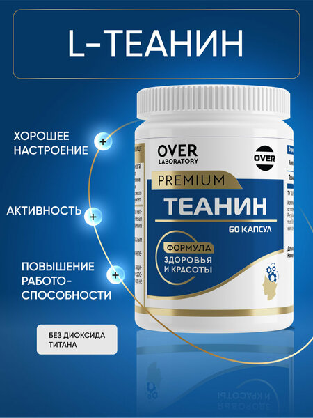 Теанин от OVER laboratory L-теанин - это аминокислота природного происхождения, которая служит естественным антидепрессантом и стимулятором мозговой активности. В ходе многочисленных научных исследований, было установлено, что l-теанин повышает концентрацию и внимание, а также помогает улучшить работу головного мозга. Теанин эффективно устраняет состояние беспокойства и тревоги, повышает устойчивость к острому стрессу и нормализует работу нервной системы в целом. Основные функции: поддерживает высокую умственную работоспособность; повышает концентрацию и внимание; улучшает качество сна; снижает артериальное давление; улучшает иммунитет. 1 капсула содержит: теанин - 300мг.