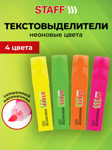 Откройте для себя набор текстовыделителей STAFF "EVERYDAY HL-707", который станет незаменимым помощником в вашей канцелярии! Эти маркеры выделители в 4 неоновых цветах — желтом, зеленом, оранжевом и розовом — помогут вам ярко и эффективно выделять важные моменты в учебных материалах, офисных документах или даже в заметках для рисования. Скошенный наконечник с толщиной линии от 1 до 5 мм идеально подходит для мелкого текста и таблиц, а удобный прямоугольный корпус диаметром 24 мм создает комфорт при использовании. Светоустойчивые чернила на водной основе гарантируют, что ваши выделения не выцветут даже под солнцем, а экономный расход чернил позволяет дольше наслаждаться работой с этими фломастерами. Не упустите возможность добавить этот набор текстовыделителей в свои офисные принадлежности — он не только практичен, но и отличается привлекательной ценой. Преобразите свои заметки и документы с помощью ярких маркеров, которые помогут вам сосредоточиться на главном. Выберите STAFF "EVERYDAY HL-707" и делайте свои идеи заметными! • Цвет чернил: неоновый ассорти. • Количество в комплекте: 4 шт. • Форма наконечника: скошенный. • Спецэффект цвета чернил : неоновый. • Основа чернил: водная. • Серия: EVERYDAY HL-707. • Мин. толщина линии письма: 1 мм. • Макс. толщина линии письма: 5 мм. • Повышенная светостойкость: да. • Форма корпуса: прямоугольная. • Диаметр корпуса: 24 мм. • Товар относится к сегменту эконом: да. • Эргономичная зона захвата: да. • Упаковка: ОПП пакет с европодвесом. • Артикул производителя: 152548.