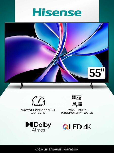 Телевизор Hisense 55E7Q PRO с диагональю 55 дюймов и разрешением 4K QLED создан для ценителей высококачественного изображения и звука. Модель с нативной частотой обновления 144 Гц и поддержкой технологий VRR, AMD FreeSync Premium обеспечивает плавный игровой процесс без разрывов и лагов. Технология QLED Colour передает более миллиарда оттенков, делая каждый кадр ярким и детализированным. Для киноманов предусмотрен режим Filmmaker, который воспроизводит контент в оригинальном качестве, как задумано режиссером. Объемный звук с глубокими басами и синхронизацией саундбара через Hi-Concerto Sound превращает просмотр в кинотеатральное событие. Игровая панель и HDMI 2.1 позволяют играть в 4K@120 Гц, а функции MEMC и 3D Noise Reduction обеспечивают четкость в динамичных сценах. Телевизор оснащен AI Upscaler, который улучшает качество контента до 4K, включая старые фильмы и потоковые трансляции. Умная регулировка яркости адаптирует экран под освещение, сохраняя комфорт для глаз и экономя энергию. Голосовое управление и ОС VIDAA с ИИ упрощают поиск контента, предлагая персонализированные рекомендации. Подключение устройств через HDMI 2.1, USB 3.0 и Bluetooth 5.0 делает использование удобным и универсальным. Телевизор Hisense 55E7Q PRO — идеальный выбор для геймеров и киноманов, сочетающий передовые технологии и премиальное качество. Hisense 55E7NQ PRO; Hisense 100E7NQ PRO; Hisense 65E7NQ PRO; Hisense 85E7NQ PRO; Hisense 75E7NQ PRO;