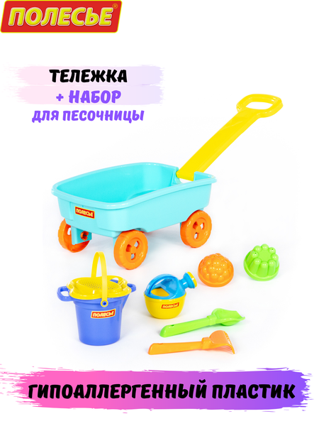 Тележка каталка детская с ручкой и набор для песочницы Полесье