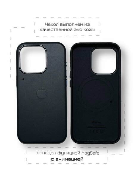 Кожаный чехол для iPhone 14 Описание: Этот стильный и функциональный чехол из высококачественной экокожи защищает ваш смартфон от царапин и повреждений. Он идеально подходит для iPhone 14 и имеет элегантный дизайн. Чехол совместим с технологией MagSafe, что обеспечивает удобную и надежную фиксацию на вашем смартфоне. Преимущества: - Экокожа высокого качества - Стильный дизайн - Защита от царапин и повреждений - Приятная подкладка ( внутренняя часть) - Удобная и надёжная фиксация - Совместимость с MagSafe аксессуарами -Анимация ( как кошелька )