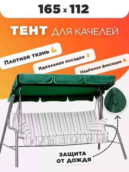 Тент крыша на садовые качели 165х112 зеленая с водоотталкивающей пропиткой