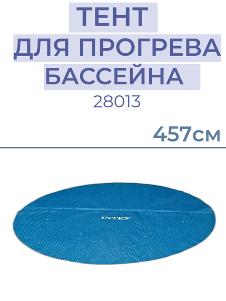 Тент солнечный для надувных и каркасных бассейнов Intex 28013 Solar Pool Cover имеет диаметр 448 см, что меньше чем диаметр бассейна. Это сделано специально для того, чтобы покрывало беспрепятственно лежало на воде. На поверхности имеются круглые отверстия, они необходимы для того, чтобы дождевая вода не скапливалась на поверхности покрывала. Основной задачей покрывала является прогрев воды днем и сохранение температуры воды ночью за счет ячеистой структуры. С помощью данного солнечного покрывала можно увеличить температуру воды в бассейне на несколько градусов без энергозатрат. Характеристики: -тип: согревающее покрывало Solar Pool Cover; -назначение: укрытие каркасных и надувных бассейнов круглой формы; -диаметр бассейна, см: 457; -толщина покрывала, мм: 0,16; -диаметр покрывала, см: 448; -материал тента: ПВХ (пленка с ячеистой структурой; -вес упаковки, кг: 3.