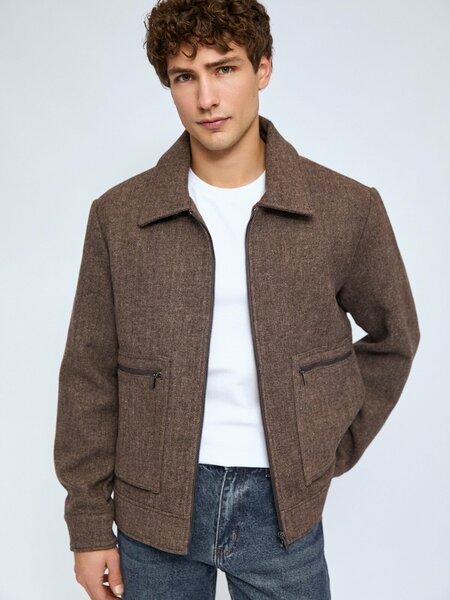 Эта мужская куртка-рубашка от Zolla - отличный выбор для демисезона и круглогодичного использования. Куртка выполнена в коричневом цвете, что делает ее стильной и практичной. Куртка-рубашка имеет прямой силуэт и модель "трубы", что обеспечивает комфорт и свободу движений. Укороченный крой и отложной воротник добавляют ей элегантности. Куртка застегивается на молнию, что обеспечивает быстрый и удобный доступ к внутренним слоям. Состав куртки включает 21% шерсти, 2% вискозы, 63% полиэстера, 2% нейлона и 12% акрила. Это гарантирует тепло и комфорт в прохладную погоду. Обхват груди составляет 94-98 см, обхват талии - 82-86 см, а обхват бедер - 98-102 см. Выбирая эту куртку-рубашку, вы получаете стильный, теплый и удобный предмет гардероба, который прослужит вам долгое время.