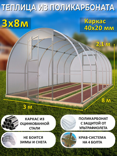 Теплица Арочная из поликарбоната 3 на 8 метров - Боярская Люкс.