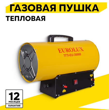 Тепловая газовая пушка Eurolux ТГП-EU-30000: эффективный обогрев Тепловая газовая пушка Eurolux ТГП-EU-30000 обеспечивает быстрый и равномерный обогрев помещений площадью до 300 квадратных метров благодаря мощности обогрева 30 кВт и прямому нагреву воздуха. Регулировка температуры и безопасность Одним из главных преимуществ тепловой газовой пушки Eurolux является возможность регулировки температуры нагрева, что позволяет настроить пушку под конкретные условия эксплуатации и обеспечить комфорт в помещении. Система безопасности отключает пушку при перегреве, делая ее безопасной в использовании и предотвращая возможные повреждения оборудования. Удобство перемещения и хранения Удобство перемещения и хранения обеспечивается благодаря удобной ручке для перемещения пушки. Компактный размер и легкий вес делают пушку удобной в транспортировке и хранении. Стильный дизайн и яркий желтый/черный цвет Стильный дизайн и яркий желтый/черный цвет пушки отлично смотрятся в любом помещении и придают ей современный вид. В комплекте с тепловой газовой пушкой Eurolux ТГП-EU-30000 поставляется паспорт и упаковка. Напряжение пушки составляет 220В, а расход топлива – 2,18 кг. Максимальный воздухообмен составляет 1000 м³/ч. Выбирая тепловую газовую пушку Eurolux ТГП-EU-30000, вы получаете надежный и эффективный инструмент для обогрева помещений, который станет незаменимым помощником в любых условиях.
