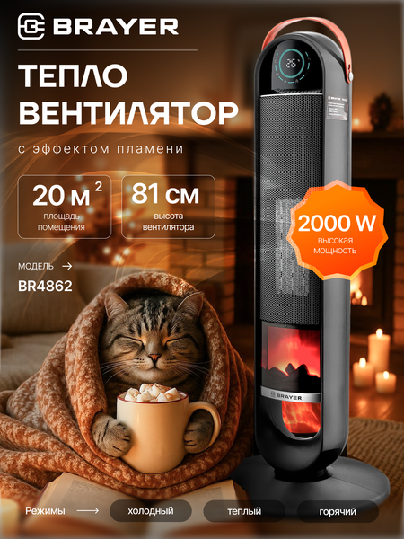 Тепловентилятор BRAYER BR4862 – современный обогрев с эффектом пламени!