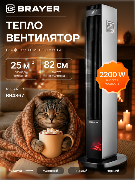 Тепловентилятор BRAYER BR4867 – интеллектуальный климат-контроль с 3D-обогревом!