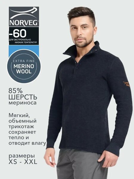 Термокофта из серии Norveg -60C - теплое и мягкое зимнее шерстяное мужское термобелье, предназначено для использования в условиях холодного климата и очень низких температур. Приятная удобная термоодежда, утепленный термо лонгслив для охоты, рыбалки, походов, мотоспорта или экстремального туризма. В производстве данной модели кофты используется шерсть мериносов класса extra fine merino wool с применением особой техники валяния - фелтинг (felting). Трикотаж, изготовленный по данной технологии, становится объемным, с большим количеством «воздушных камер». Повышается износостойкость и показатели по теплосбережению. Особенность технологии позволяет сохранить эластичность, мягкость и легкость. Анатомический крой дает свободное облегание, высокие манжеты защищают запястья и кисти. Воротник-стойка с удобной застежкой на кнопки позволяет дополнительно регулировать теплообмен. Спинка удлиненная, полностью закрывающая поясницу при наклоне.