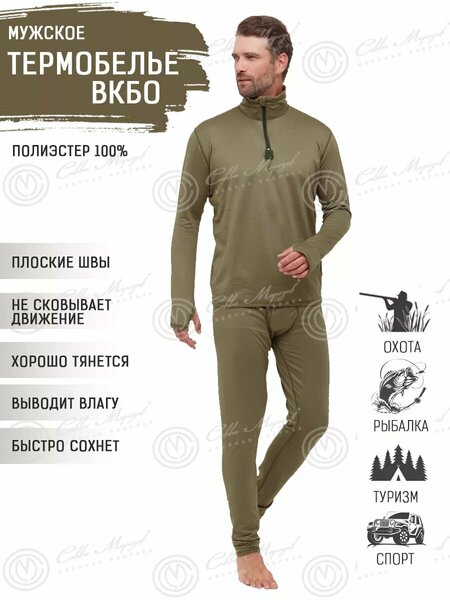 Термобелье зимнее флисовое, военное, уставное, вкбо - это комплект нательного влагоотводящего белья, который согревает при температуре до -20 градусов. Комплект состоит из термолонгслива и штанов, выполненных из оригинального флиса. Кофта оснащена воротником-стойкой на молнии, удлиненной спинкой и длинными рукавами с отверстиями для больших пальцев. Брюки имеют двойную ластовицу-гульфик и эластичный пояс с прокладкой. Бикомпонентная структура полиэфирных волокон обеспечивает быстрое отведение влаги от тела и равномерное распределение по поверхности полотна, что способствует быстрому высыханию. Термобелье выполнено из перфорированного флиса с низким ворсом с внутренней стороны, что обеспечивает комфорт при носке. Белье тянется в четыре стороны, что гарантирует высокий уровень комфорта. Рекомендуется стирать термобелье при температуре 30-40 градусов. Цвет товара - светло-оливковый, светлый хаки. Выбирая термобелье зимнее флисовое, военное, уставное, вкбо, вы получаете качественный и функциональный комплект, который обеспечит вам комфорт и тепло в зимний период.