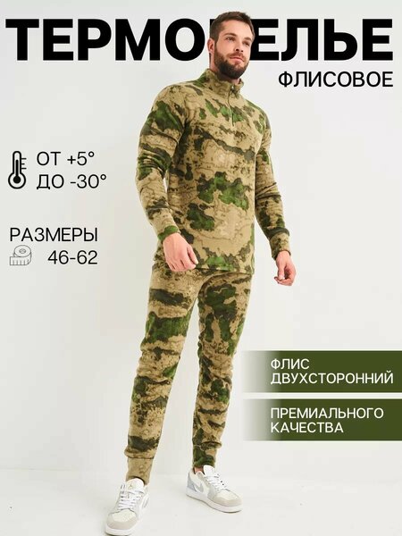 Термобелье зимнее - универсальное решение для всех любителей активного отдыха. Комплект состоит из лонгслива и кальсон брюки леггинсы. Изготавливается термокомплект из флиса. Флис быстро вбирает в себя лишнюю влагу. Материал изделия дышащий пропускает воздух удерживает тепло. Термокостюм предназначен для использования в качестве нательного белья в экстремально холодную погоду, или как второй слой с использованием более тонкого термобелья. Воротник стойка на молнии. Лонгслив и брюки можно использовать как самостоятельные изделия. От +5 до -30 градусов. Охота рыбная ловля зимняя туризм походы активный зимний отдых альпинизм хоккей футбол сноуборд горнолыжный спорт. Тактическая одежда отличный подарок мужчине на день рождения 23 февраля день защитника отечества тренеру мужу папе. Одежда для дома белье нательное мужское большие размеры мужчинам для подростков заречье зимний тактический костюм камуфляжный костюм на флисе. Комплект термобелья мужские подштанники большие размеры нательное белье одежда для охоты и рыбалки рыбалка зимняя экипировка для подростка для спорта футбола. горнолыжная экипировка; Костюм непродуваемый; Рашгард драй драй сноубординг туризм;