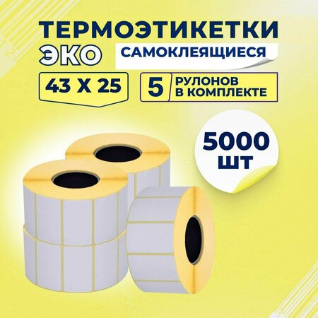 Термоэтикетки самоклеящиеся ЭКО 43х25 мм. Намотка в 1 рулоне - 1000 этикеток, внутренний диаметр втулки - 40 мм. Структура этикетки. Высококачественные самоклеящиеся этикетки ЭКО относятся к экономичному материалу. Термоэтикетка состоит из белой бумага, на которую наносится термочувствительное покрытие и клеевого слоя, с обратной стороны, закрытого бумажной подложкой. Это позволяет получить высокий контраст изображения и отличное считывание сканерами. Этикетка имеет плотность бумаги - 70 г/м2. Клеящий слой обеспечивает прекрасное приклеивание на широкий спектр поверхностей, включая стекло, бумагу, пластик, дерево, металл, картон, стретч-ленту, пузырьковую пленку, курьерские пакеты и др. материалы. Желтая, гладкая, очень прочная бумага подложки, препятствует пропуску этикеток при считывании их принтером. Данный тип этикеток является наиболее популярным из-за доступности по цене и простоты использования. Печать этикеток ЭКО осуществляется методом прямой печати на термопринтерах, а так же на термотрансферных принтерах, предназначенных для печати с риббоном (без использования красящей ленты). Это является главным преимуществом термоэтикеток ЭКО. Печать на них отличается высокой контрастностью изображения и отличной считываемостью сканером. Термоэтикетки 43х25 подходят к любому современному принтеру для этикеток (термопринтер XPRINTER XP-365B, XP-365B; ZEBRA GK500U; CODEX G500U, G530U; TSC TE-200 TE-300; DATAMAX-4206 4206A и других). Важно перед начало печати произвести соответствующие настройки принтера и провести калибровку датчика печати этикеток по инструкции к принтеру во избежание пропуска этикеток, неточной печати. Термоэтикетки ЭКО широко применяются для маркировки различных продуктов и канцелярских и хозтоваров, упаковки в торговле, логистике и производстве. Этикетки самоклеящиеся можно использовать для организации пространства в качестве наклейки с рукописным текстом на банки, бутылку, для сыпучих продуктов и специй. Термоэтикетки ЭКО соответствуют стандартам всех маркетплейсов.