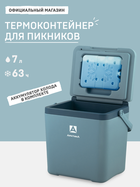 Термоконтейнер Арктика объемом 7 литров с удобной ручкой - идеальный компаньон для ваших приключений на природе! Этот изотермический контейнер холодильник предназначен для использования в туризме, на пикниках, в походах и на рыбалке, обеспечивая сохранность температуры вашей еды и напитков в течение длительного времени. Благодаря своему объему и прочной конструкции, он также легко превращается в дорожный холодильник для перевозки продуктов в автомобиле. Термобокс Арктика 7 литров идеально подойдет как контейнер для хранения напитков и продуктов, при этом может использоваться как надежный медицинский контейнер для транспортировки лекарств и медицинских препаратов. Благодаря возможности добавления хладоэлементов, он может также функционировать как контейнер для заморозки. Сделайте ваше время на природе комфортным с термоконтейнером Арктика 7 литров - вашим верным спутником в любых путешествиях! Обращаем ваше внимание, что в термоконтейнере запрещено использовать сухой лед, т. к. это приведет к разрушению внутренних стенок контейнера из-за переохлаждения пластика. В результате, термоконтейнер перестанет поддерживать температуру в соответствии с заявленными характеристиками. Рекомендуем использовать вместе с изотермической продукцией Арктика из расчета не менее 10% от объема термосумки или термоконтейнера. Например, если у вас термосумка на 30 литров, то аккумуляторов холода вам понадобится не менее 3 литров в сумме (5 шт. по 600 мл, 8 шт. по 400 мл или 15 шт. по 200 мл).