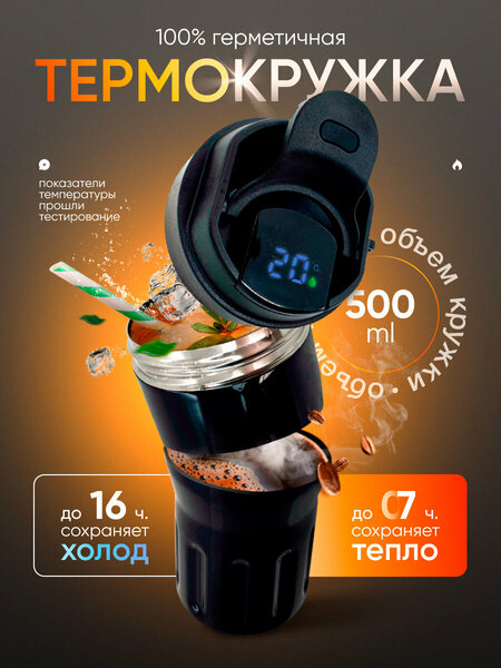Хотите насладиться горячим кофе или чаем даже в дороге? Автомобильная термокружка 500мл с LED экраном и датчиком температуры именно то, что вам нужно! Этот стильный термостакан сохранит ваш любимый напиток горячим до 8 часов благодаря уникальной двойной изоляции, холодные напитки до 18 часов Термокружка для кофе идеально подойдет для комфортного путешествия на работу, в поездку или на прогулку. Ее удобная крышка с фиксатором надежно защитит от проливаний, а прочный противоударный корпус из нержавеющей стали обеспечит долгий срок службы изделия. Эта термокружка не только функциональна, но и стильна – ее современный дизайн и удобная форма придутся по вкусу каждому. Выбирайте качество и надежность – выбирайте автомобильную термокружку! Не упустите возможность наслаждаться горячим напитком в любое время и в любом месте. Термостакан отличный подарок на Новый год, на день рождение, на 23 февраля, 8 марта и подарок без повода будет радовать долгое время