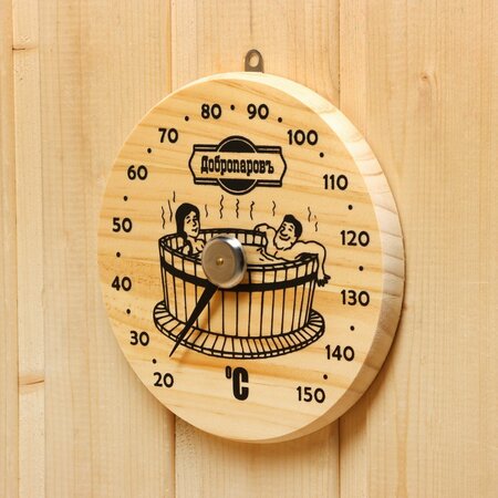 Термометр для бани "Удовольствие", деревянный, d=16 см, Добропаровъ, 9785832