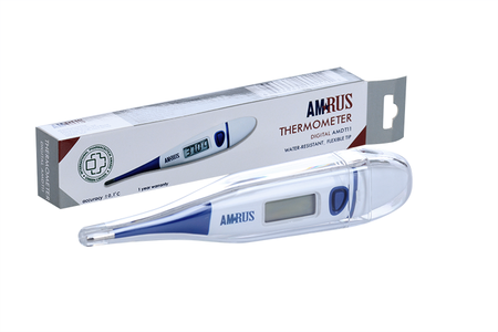 Термометр медицинский цифровой AMDT11 предназначен для измерения температуры тела человека. Область применения - лечебно-профилактические учреждения здравоохранения и индивидуальное использование для самоконтроля. Он отличается от классического стеклянного ртутного термометра: обладает высоким быстродействием и точностью, сохраняет в памяти результат предыдущего измерения, подает звуковой сигнал при включении, повышенной температуре и окончании измерения; не содержит ртути.
