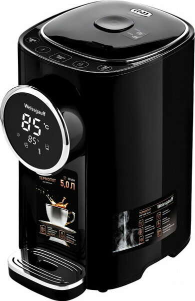 Вместительный и функциональный накопительный термопот от Weissgauff, выполненный в чёрном цвете, обладает баком для воды объемом 5 литров, возможностью поддержания требуемой температуры в диапазоне от 45 до 95 °C, а также 6 уровнями регулировки нагрева и опцией повторного кипячения. Объем 5 литров, делает данный термопот по-настоящему вместительным, позволяя поддерживать достаточный объем подогреваемой воды даже для самой большой семьи! Накопительный тип нагрева позволяет непрерывно поддерживать заданную температуру сразу для всего добавленного объема воды в баке! Диапазон температур от 45 до 95 °C, с возможностью выбора одного из 6 предустановленных уровней нагрева, позволит с легкостью обеспечить требуемую температуру подаваемой воды, исходя из предпочтений и пожеланий пользователя! Отображение заданной и текущей температуры, всегда поможет вам понять, когда вода уже достигла требуемого уровня нагрева, а когда еще необходимо немного подождать! Функция повторного кипячения, позволит всего в одно нажатие заново вскипятить воду в термопоте, даже если с момента предыдущего кипячения уже прошло некоторое время! Внутренняя система охлаждения воды, поможет вам при необходимости с легкостью понизить температуру воды до требуемого уровня, делая её комфортной для питья! Удобное электронное управление с крупным дисплеем - не только отзывчивое, но и интуитивно понятное даже пользователю, не работавшему ранее с подобной техникой! Внутренний бак из нержавеющей стали - воплощает в себе надежность, защиту от коррозии и неизменное качество, благодаря которым этот термопот будет радовать вас долгие годы! Дизайн, выполненный в черном цвете - станет финальным штрихом в совершенстве великолепного облика этой модели. Каждый раз, взаимодействуя с термопотом от Weissgauff, вы будете в полной мере ощущать, как он способен нагревать не только воду, но и согревать душу, став настоящим сердцем вашего уютного семейного домашнего очага! Предупредительный сигнал о нехватке воды - всегда подскажет вам, когда вода в баке термопота заканчивается, и необходимо добавить еще! Блокировка от детей - эффективная защита от незапланированной активации устройства, например, в результате случайного нажатия во время уборки или при попытке включения прибора детьми! Технические характеристики Объем: 5 л Тип нагревателя: Накопительный Диапазон температур: 45-95 °C Непрерывная подача воды: Есть Количество уровней нагрева: 6 Дополнительные функции: Повторное кипячение, Быстрое охлаждение Тип управления: Электронное Дисплей: Есть Защита от перегрева: Есть Блокировка от детей: Есть Материал: Пластмасса, нержавеющая сталь Цвет: Черный Номинальная мощность: 1200 Вт Номинальное напряжение: 220-240 В Номинальная частота: 50/60 Гц Ширина: 295 мм Глубина: 210 мм Высота: 350 мм Вес, нетто: 2,7 кг