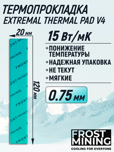Термопрокладки FrostMining Extremal Termal Pads 15 Вт/мК – самые популярные высокопроизводительные термопрокладки в нашей линейке! Это отличный выбор для вашей техники! Предназначены для отвода тепла от нагревающихся элементов оборудования и бэкплейтов средне и высокопроизводительного оборудования и видеокарт. Если вы хотите обслужить производительную и горячую видеокарту для "тяжелых" игр и мощного разгона - данное решение как раз для вас! Наши термопрокладки позволят устранить перегрев вашей техники. Преимущества наших термопрокладок: Высокое качество материалов Теплопроводность 15 Вт/мК, идеально подходят для любого оборудования Выпускаются во всех необходимых для обслуживания толщинах Не текут Не проводят электрический ток Наши термопрокладки подходят для множества интерфейсов, отводом тепла на которых являются радиаторы, таких как: видеокарты, NVMe накопители, материнские платы, оперативная память и других электронных устройств, где конструктивно предусмотрено использование термопрокладок. Все термоинтерфейсы FrostMining изготовлены из передовых материалов с учетом пожеланий геймеров, майнеров и любителей разгона. Термопрокладки от FrostMining - это идеальное решение для охлаждения вашего оборудования! Инструкция по применению: 1) Очистите вашу систему охлаждения от пыли и грязи; 2) Удалите пленку с обеих сторон термопрокладки 3) Вырежьте скальпелем или канцелярским ножом нужный размер термопрокладки; 4) Разместите термопрокладки на греющихся элементах вашего оборудования; 5) Закрутите систему охлаждения.