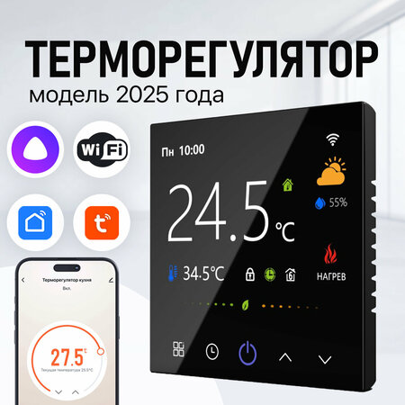 Терморегулятор/термостат для тёплого пола FUJIHOME FHW-550B, с датчиком влажности, ЖК дисплей, программируемый с WiFi, работает с Яндекс Алисой