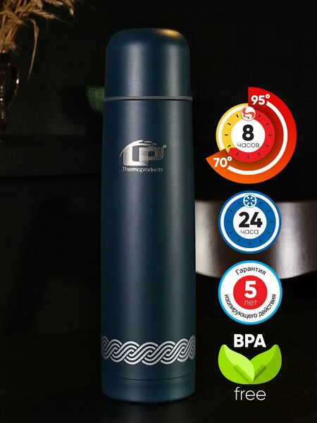 Термос 1л LP для напитков функционален на каждый день и в любом месте: на прогулке, на тренировке в спортивном зале, в путешествии, на работе в офисе, на учебе в школе или в институте. Термос для чая долго сохраняет нужную и комфортную температуру. Оптимально использовать термобутылку мамам и папам для приготовления смеси младенцам в дороге. Удобно использовать бутылку для воды для стабилизации водного баланса организма в любой ситуации благодаря компактности и легкости. Ударопрочный корпус бутылки из нержавеющей стали 18/8 с двумя стенками высочайшего качества устойчив к вмятинам, не впитывает запахи и не меняет вкус напитков. Покрытие корпуса термоса с чашкой устойчиво к царапинам. Пластик и уплотнители матермоса выполнены из экологичных материалов без запаха. Технология глубокого вакуума термоса походного позволяет внешней стенке не нагреваться и пользоваться термосом туристическим в экстремальных условиях мороза для горячего чая или жары для кофе с собой со льдом. Термос мужской для напитков размещается в велосипедном держателе, сумке, рюкзаке или портфеле благодаря абсолютной герметичности. Вы можете не опасаться за сохранность вещей в рюкзаке вместе с термосом женским. Надежное внешнее покрытие термоса для заварки защищает корпус от повреждений. Горлышко термоса спортивного заужено для максимального сохранения температуры. Вы можете приготовить в термосе подарочном горячий глинтвейн на свой вкус даже с добавлением палочек корицы. Термос для напитков является достойным имидж аксессуаром, а не просто бутылкой для напитка. Безупречное качество термоса для кофе, эксклюзивный дизайн, подходит как женщинам, так и мужчинам, молодым людям и подросткам, станет полезным подарком для себя и близких на 8 Марта и другие праздники. Будьте уверены, что выбираете качественный бренд. Покупая термос LP, вы выбираете альтернативу пластиковым стаканам и бережливое потребление. Сохраняет напитки горячими на уровне 70 градусов от 8 часов, холодными -24 часа. Гарантия производителя на изолирующее свойство 5 лет. Пластик BPA-Free.