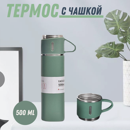 Термос с кружкой из нержавеющей стали, ваакумный, хранит тепло и холод. Идеальный подарок, себе, семье, друзьям и коллегам под различные праздники , новый год, день рождения, день знаний,